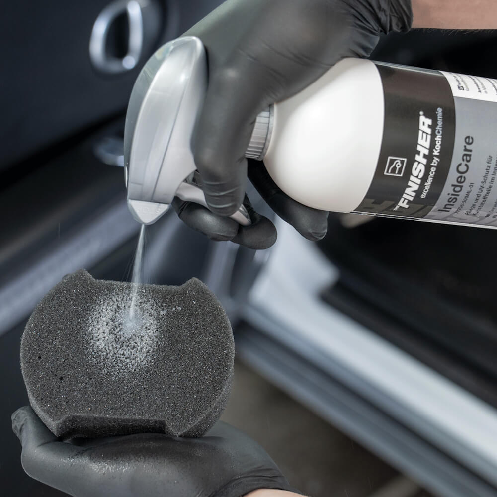 InsideCare este o soluție de curățare cu protecție UV pentru suprafețe interioare din plastic, îngrijește și protejează suprafețele din plastic nevopsit din habitaclu. Asigură un aspect ca nou, de lungă durată, previne reapariția murdăriei și protejează împotriva radiațiilor UV și a decolorării. Suprafețele rămân curate, catifelate și cu aspect natural.