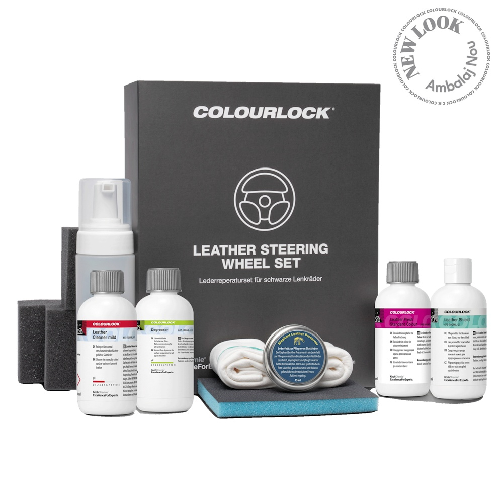 COLOURLOCK Leather Steering Wheel Set este soluția completă pentru curățarea, recondiționarea și protejarea volanului din piele. Conceput special pentru pielea utilizată în interiorul autoturismelor, acest kit ajută la îndepărtarea murdăriei, transpirației și a urmelor de uzură, redând aspectul natural și prelungind durata de viață a materialului. Volanul este una dintre cele mai utilizate suprafețe din mașină, iar întreținerea corectă este esențială pentru a preveni luciul inestetic, crăparea sau deteriorarea prematură a pielii.