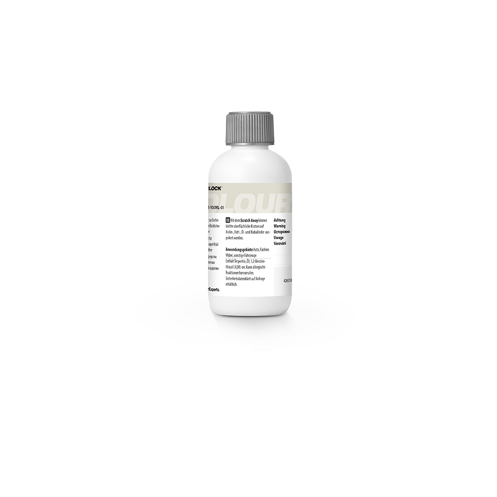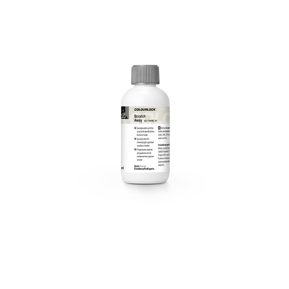 Scratch Away poate fi folosit pentru a lustrui și îndepărta zgârieturile ușoare, superficiale, de pe piele anilină, piele grasă, piele uleioasă și piele nubuck.