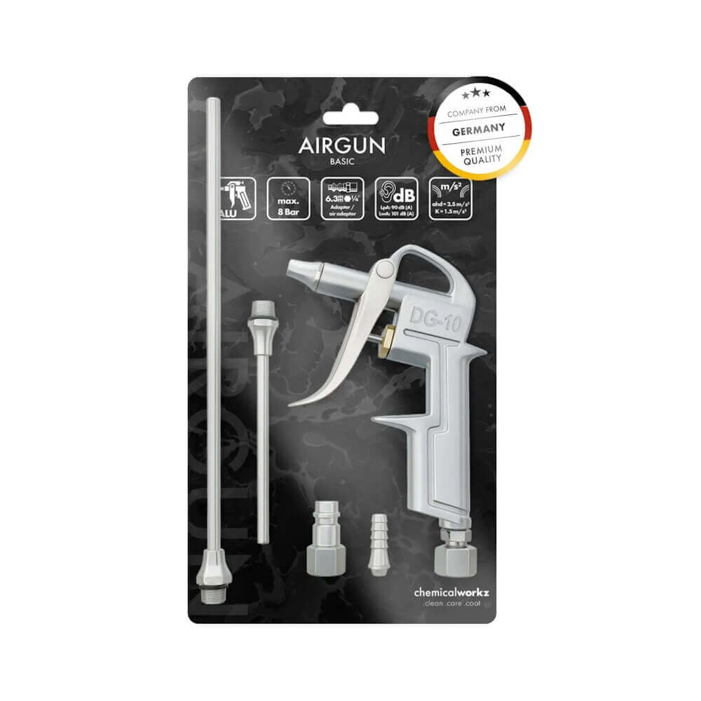 Curăță și usucă rapid zonele greu accesibile fără efort! Pistol suflat aer chemicalWorkz Air Gun Basic este o unealtă simplă, robustă și eficientă, concepută pentru detailing, service-uri și ateliere. Ideal pentru îndepărtarea apei, prafului și resturilor din cavități, jante, praguri și motor — oferă performanță profesională fără complicații.